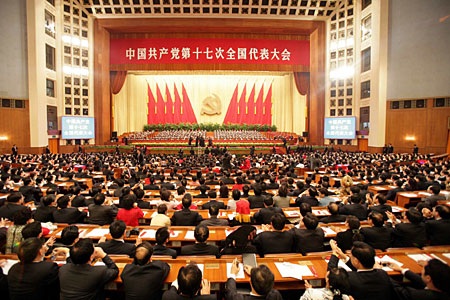 十七大舉行閉幕會   10月21日九時,中國共產(chǎn)黨第十七次全國代表大會閉幕會開始在北京人民大會堂舉行。