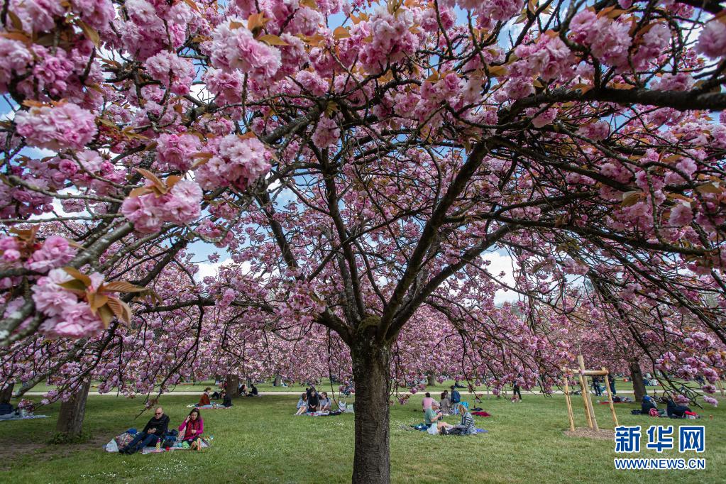 4月20日,人們?cè)诜▏?guó)巴黎近郊的國(guó)璽公園欣賞櫻花。