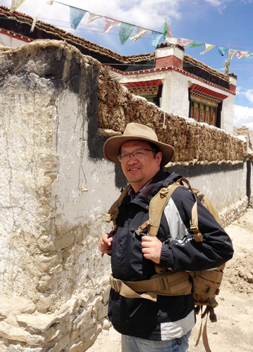 鐘揚(yáng)在西藏日喀則進(jìn)行植物采樣時(shí)留影。(新華社發(fā) 馮艾攝)