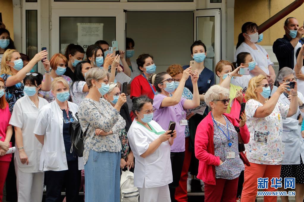 當日,羅馬尼亞首都布加勒斯特一個樂隊在該國一家傳染病醫(yī)院——馬太·巴爾什醫(yī)院演出,向抗擊新冠疫情的醫(yī)務工作者致謝。