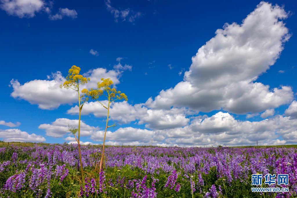 新疆裕民縣巴爾魯克山區(qū)夏牧場(chǎng)上的山花(6月14日攝)。