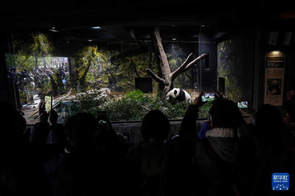 1月25日,游客在日本东京上野动物园拍摄大熊猫“晓晓”。新华社记者 贾浩成 摄