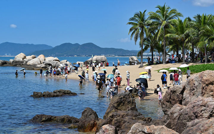 游客在三亚天涯海角游览区游玩。新华社记者郭程摄
