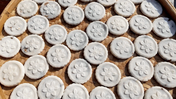 在安徽省铜陵市,米粑是传统的春节美食之一。稻米米粉是其主要制作原料,经过蒸、揉等工序后,在其中加入馅料,再用刻有各式花纹的模具拓出印有图案的米粑。依据不同人的喜好,做好的米粑可煎可蒸。油煎的米粑色泽金黄、香气扑鼻,蒸制的米粑软糯弹牙、美味可口。吃上一口米粑,馅料混着米香漫过舌尖,这就是“家的味道”。