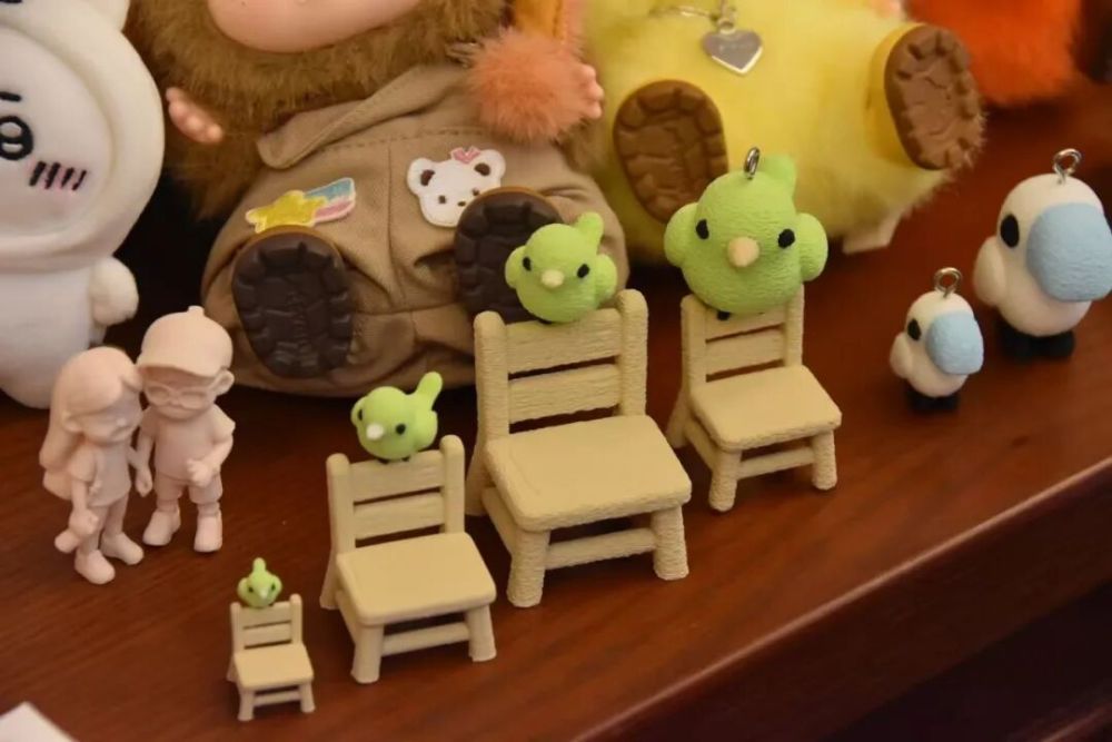 Yanan和老杨家中一个展柜的角落,上面有他们用AI生成3D项目打印出的产品。新华每日电讯记者刘澈 摄