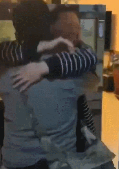 悄悄站在奶奶身后抓着手臂一同跳舞