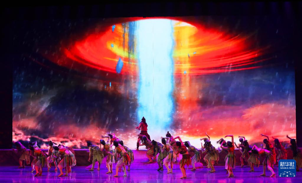 当日,由甘肃省天水市歌舞艺术研究中心创排的大型舞剧《一画开天》在兰州音乐厅上演。该舞剧运用现代舞台艺术的形式演绎了伏羲女娲携手创世、肇启中华文明的过程。