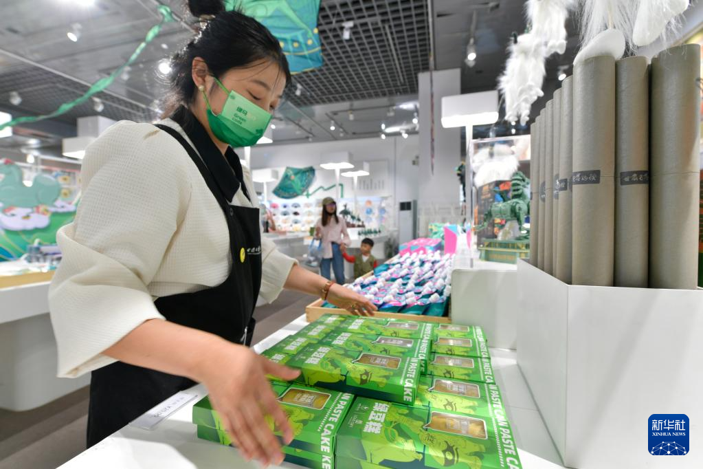这是5月18日在甘肃省博物馆拍摄的文创绿豆糕。