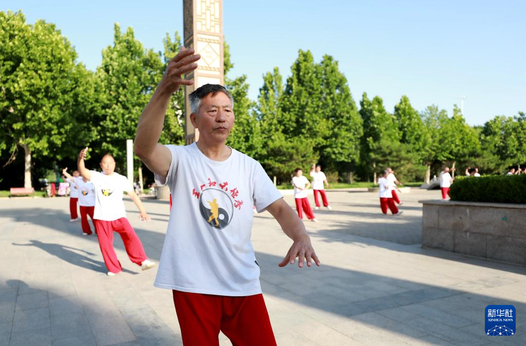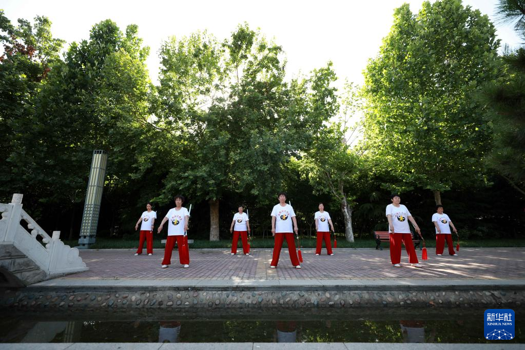 6月9日,太极拳爱好者在河北省邢台市任泽区人民广场展示王其和太极拳。