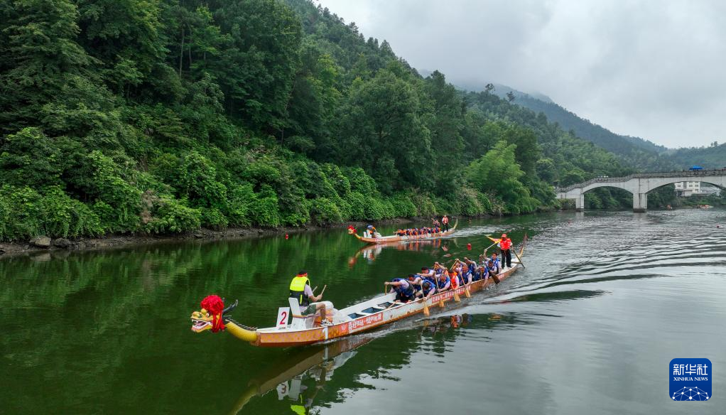当日,浙江省建德市乾潭镇举办胥溪清凉季乡村传统龙舟赛,迎接端午节。近年来,乾潭镇充分挖掘自然山水的优势,将体育旅游、生态旅游、乡村度假有效结合,积极推进乡村旅游和乡村振兴。