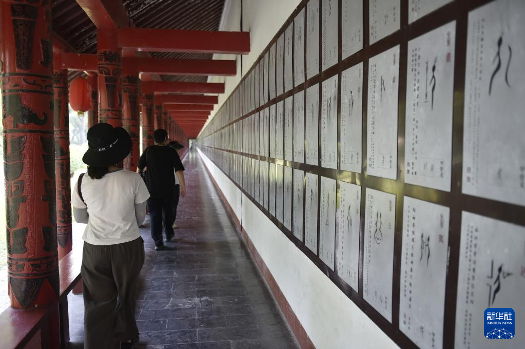6月26日,游人在河南省安阳市殷墟遗址甲骨碑廊游览。