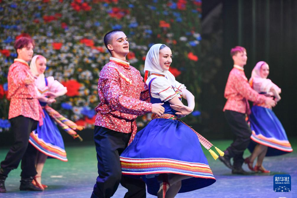 在乌鲁木齐晚报剧院,俄罗斯萨拉托夫州曙光歌舞团演员为观众表演代表作《曙光》(7月22日摄)。新华社记者 胡虎虎 摄
