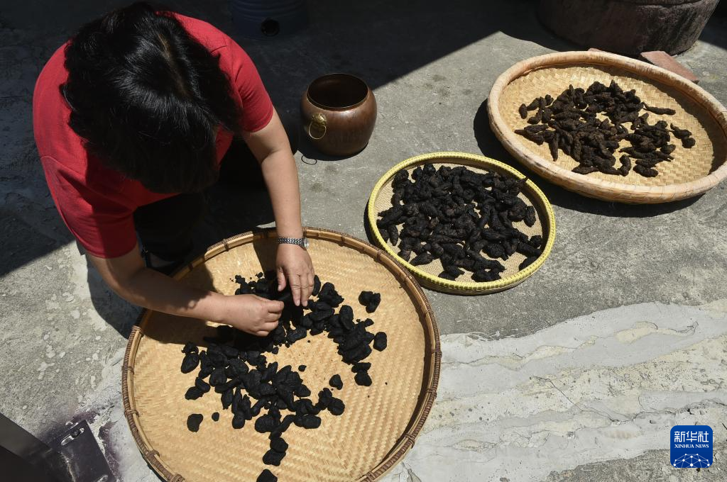 8月4日,在禹州中医药文化技艺传习馆,非遗项目“禹州中药加工炮制技艺”代表性传承人朱改莲展示中药材“九蒸九晒”加工技艺。