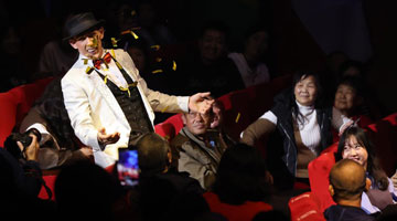 这是渔山乡千亩省级粮食生产功能区稻香文化节的少数民族舞蹈表演(11月3日摄)。
