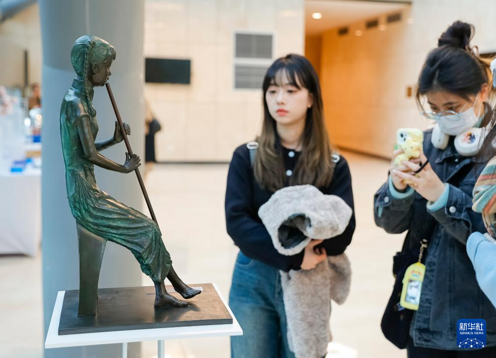 11月30日,人们在欣赏首届天府雕塑展上展出的作品。