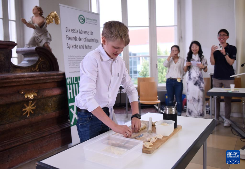 5月25日,选手亚历山大·尤克在维也纳举行的“汉语桥”奥地利赛区比赛上表演包饺子。他在本次比赛中获得中学生组冠军。