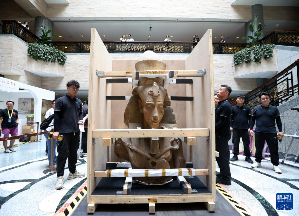 当日,来自埃及国家博物馆的埃赫那吞半身像、萨卡拉考古遗址的彩绘人形棺,率先在上海博物馆人民广场馆进行开箱亮相。