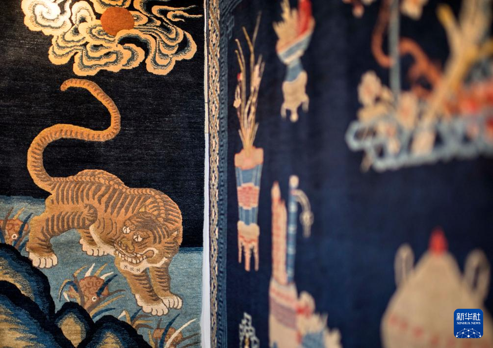 6月27日,在位于北京十里河的工作室,冀豫展示其团队的宫毯作品。