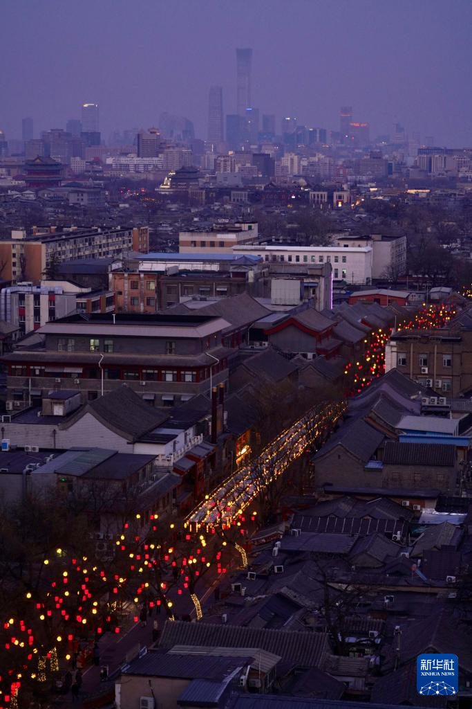 这是1月22日拍摄的北京琉璃厂西街的彩灯。