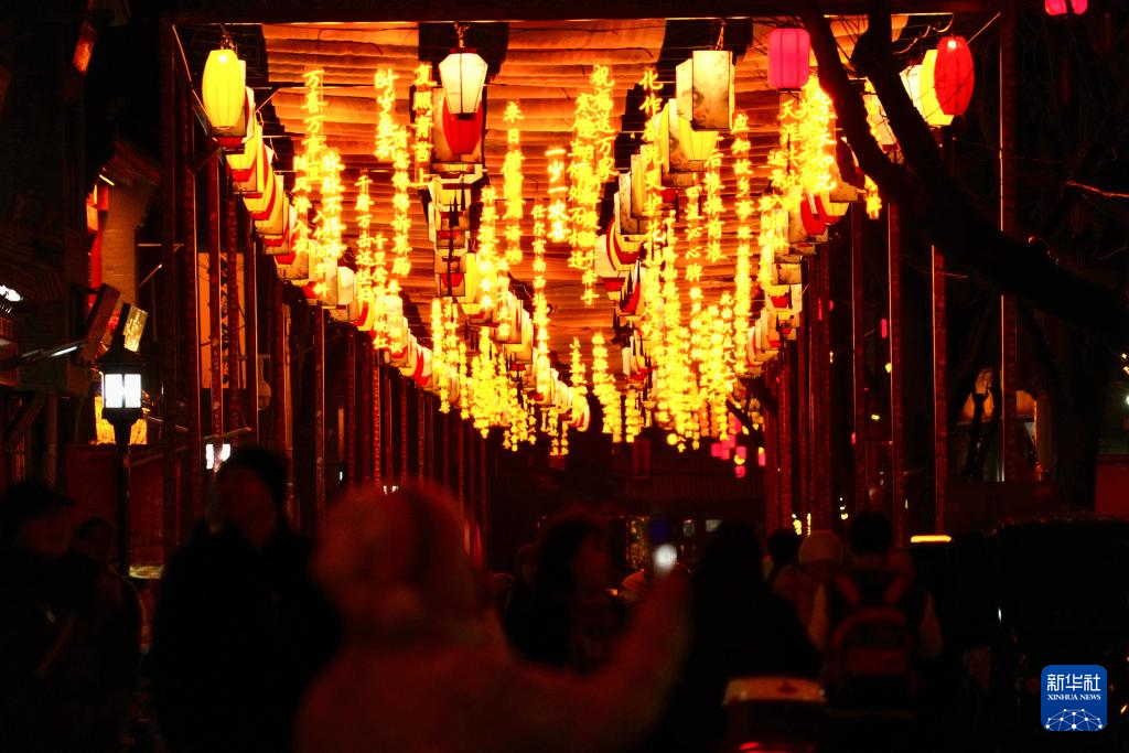 1月22日,行人从北京琉璃厂西街的彩灯下走过。