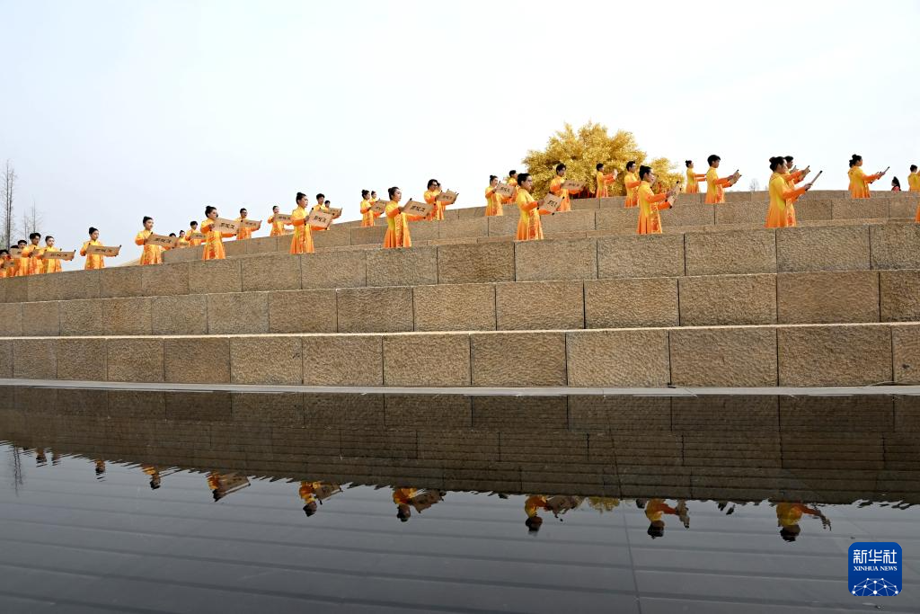 3月31日,演员在乙巳年黄帝故里拜祖大典迎宾仪式上表演。