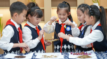 10月24日,孩子们在贵州安顺天龙屯堡古镇观看地戏表演。