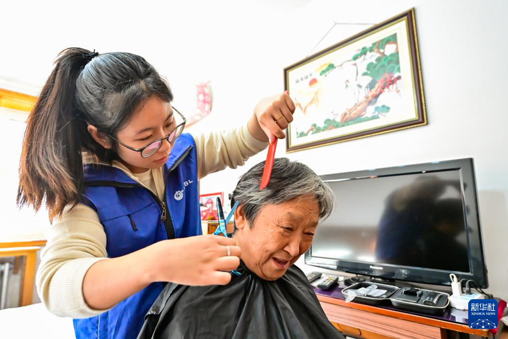 10月27日,在江苏连云港经济技术开发区中云街道胜利村,理发师为老人免费理发。