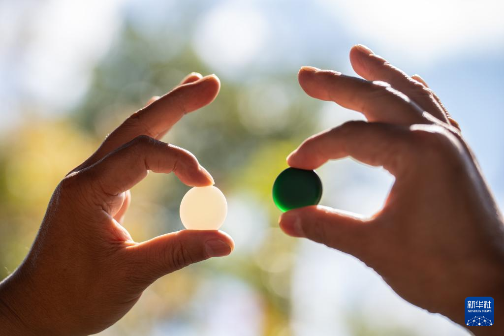 11月20日,李国伟在保山市永子棋院查看永子成色。