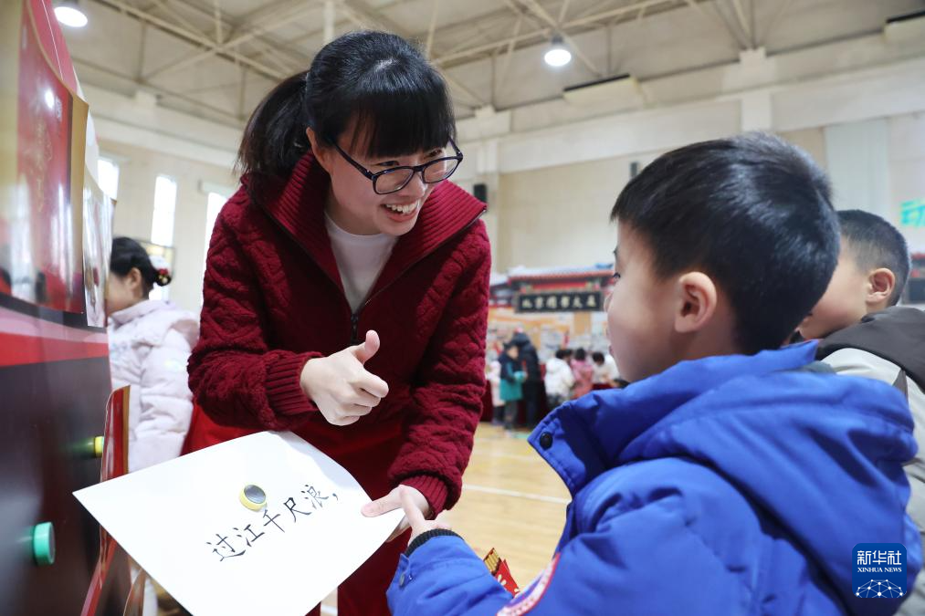 1月21日,北京小学学生在“小花蕾过大年”期末实践活动上背诵古诗。