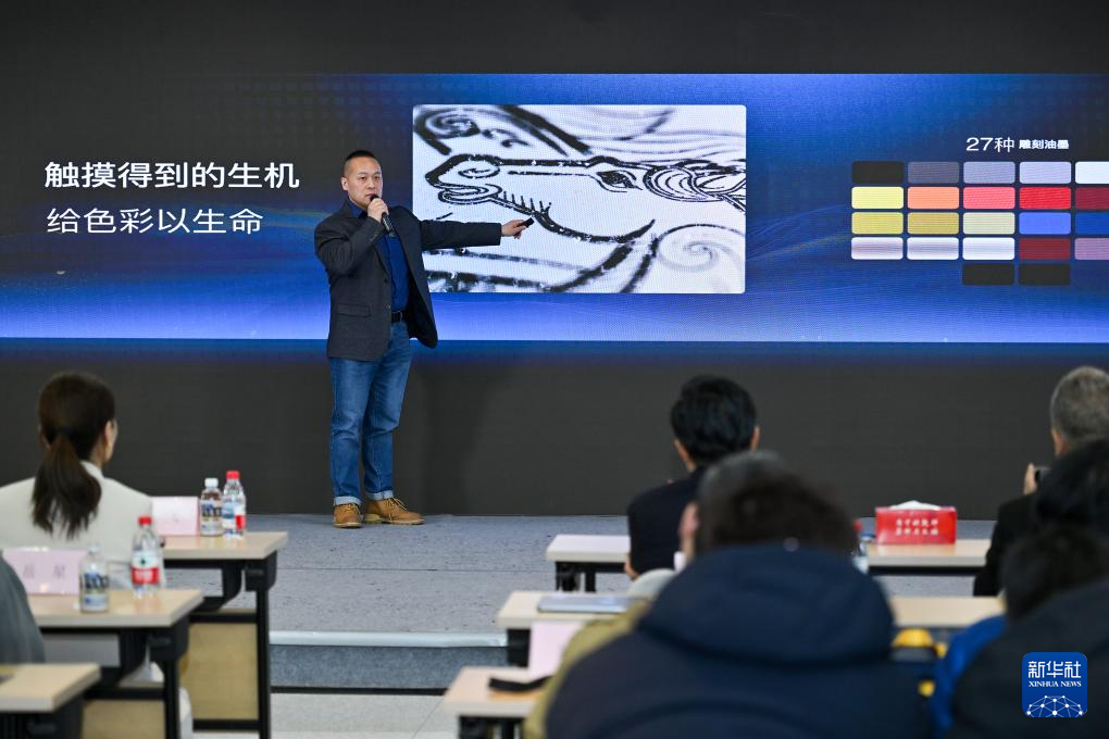 1月29日,《丙午年》生肖邮票雕刻师徐喆在活动现场讲述创作过程。