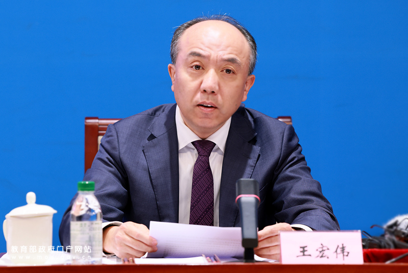 清华大学副校长王宏伟介绍清华大学加强学校体育工作有关情况。(中国教育报记者 张劲松/摄)