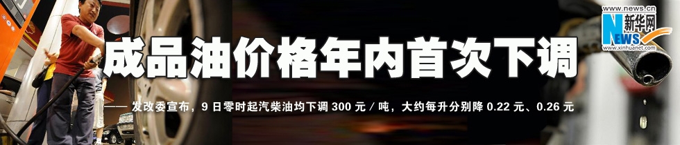 國家發(fā)展和改革委員會8日宣布,從9日零時起下調(diào)成品油最高零售價格,汽柴油均下調(diào)300元/噸,大約每升分別降0.22元、0.26元。 [詳細(xì)]