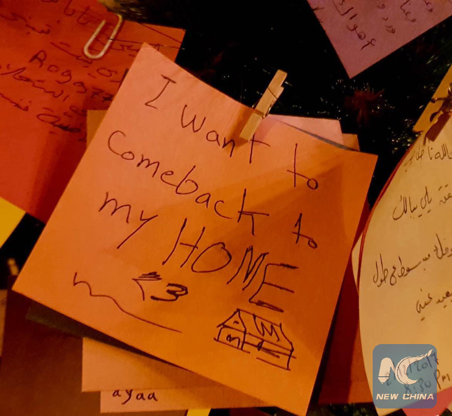 One man wished a quick return to his home in Aleppo and another person wrote on the same paper: "I hope you can have your peace back home."