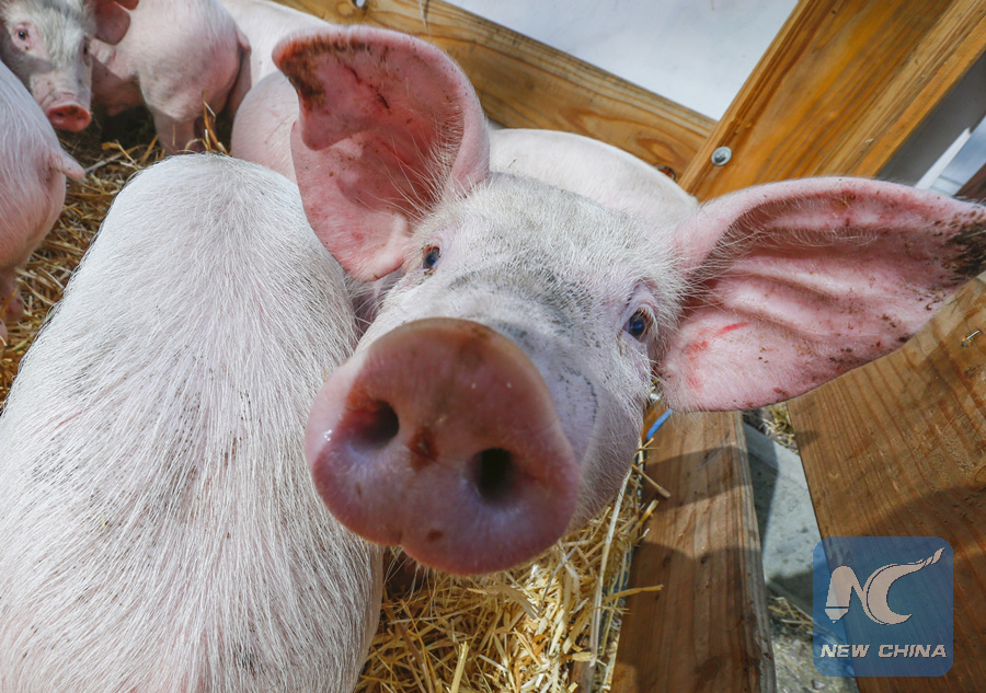 Pigs are pictured outside the European Union agriculture ministers' meeting as farmers protest against low selling prices in central Brussels, Belgium March 14, 2016. (REUTERS FILE PHOTO)
