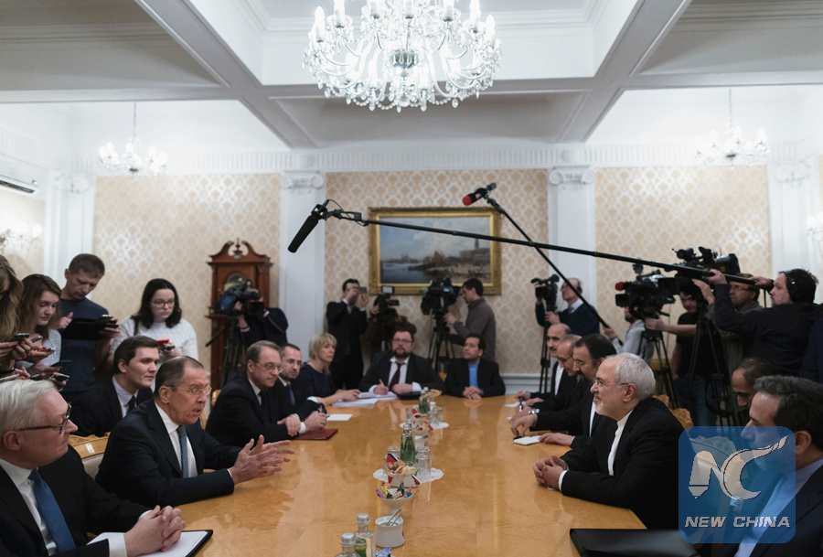 MOSCOW, Jan. 10 (Xinhua) -- Russian Foreign Minister Sergei Lavrov and his Iranian counterpart Mohammad Javad Zarif reaffirmed their commitment to a multilateral deal on Iran's nuclear program here on Wednesday.