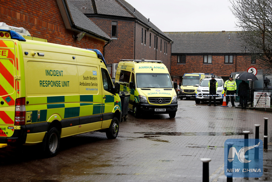 Emergency services vehicles are parked behind a pub that was visited by former Russian intelligence officer Sergei Skripal and his daughter Yulia before they found poisoned in Salisbury, Britain, March 28, 2018. (REUTERS PHOTO)