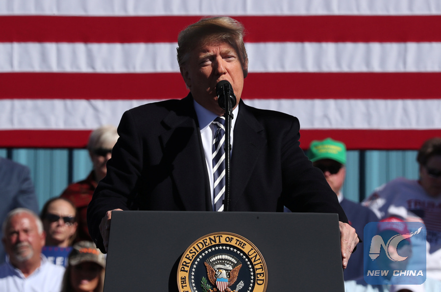 U.S. President Donald Trump speaks during a campaign rally at Elko Regional Airport in Elko, Nevada, U.S., October 20, 2018. (REUTERS PHOTO)