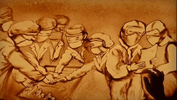 Sand performer Hu Shui makes video of her sand painting themmed on the epidemic fight in China on Feb 13, 2020. (Provided by Hu Shui)
