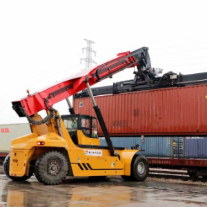 满载汽车配件的集装箱在株洲陆港被吊装上车。(国铁广州局供图)