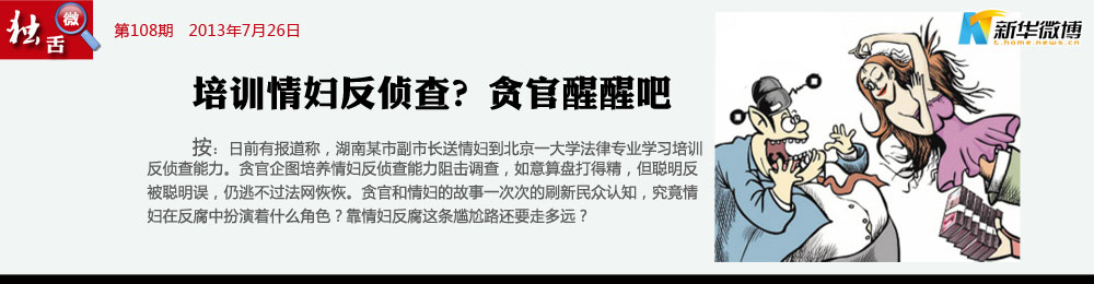 自古貪官多好色,表面光鮮心齷齪。蛀蟲花招何其多,反腐工作也難做。不怕貪官有文化,還怕情婦反偵察。監(jiān)督權(quán)力最要緊,黑手一伸就被捉。