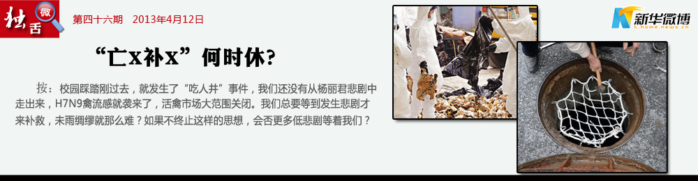 人命的代價(jià),太重 古有亡羊補(bǔ)牢今有"亡"人補(bǔ)井,如果說(shuō)亡羊補(bǔ)牢是古人的智慧的話,那今天亡"人"補(bǔ)井是某些人對(duì)自己不作為的一種補(bǔ)救。莫非事事都要等出了人命才去重視嗎?可一出人命,馬上就付諸行動(dòng)。莫非做什么事情都要付出生命的代價(jià)嗎?