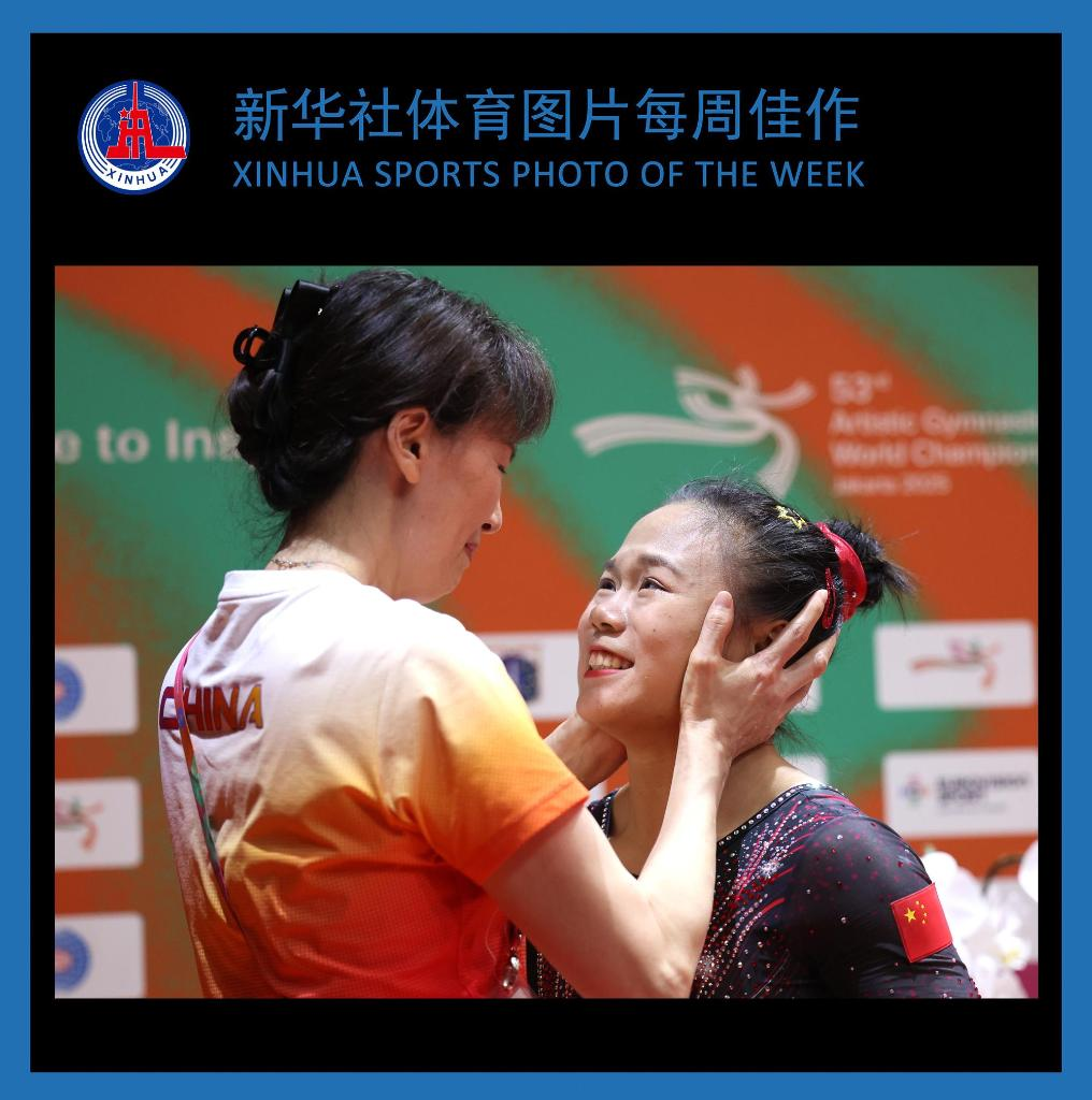 1025日,张清颖(右)夺冠后接受教练徐惊雷祝贺。
