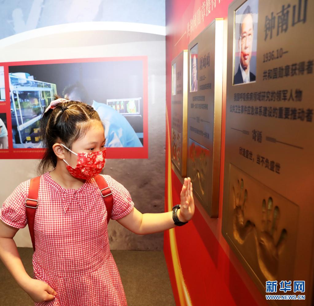 7月2日,一名女孩在“共和國(guó)勛章獲得者手?!钡恼拱迩皡⒂^。新華社記者 吳曉初 攝