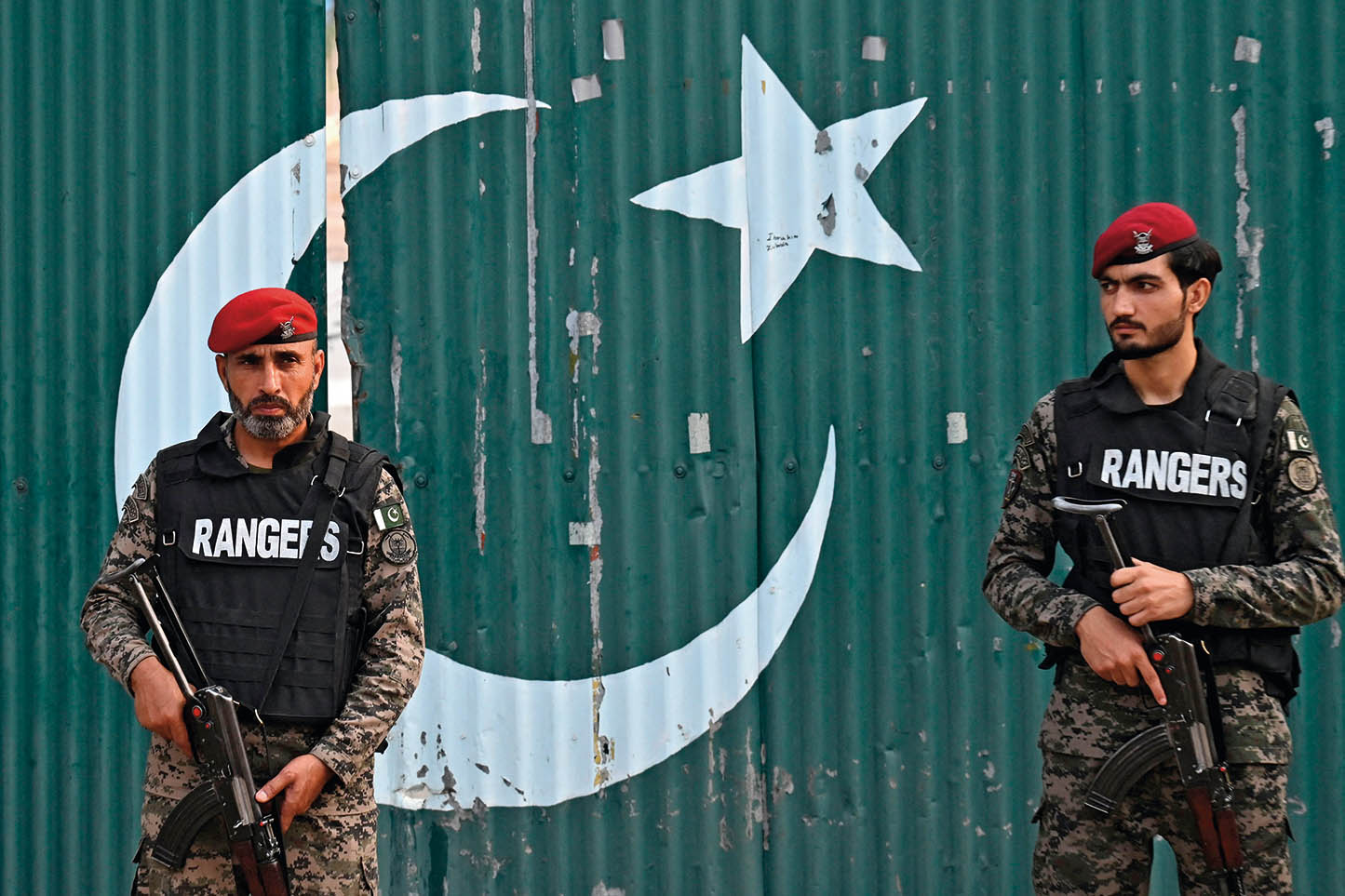 2025 年 5 月 7 日,在巴基斯坦旁遮普穆里德盖,准军事人员执行警戒任务
