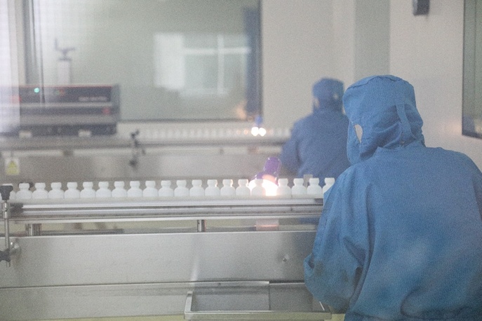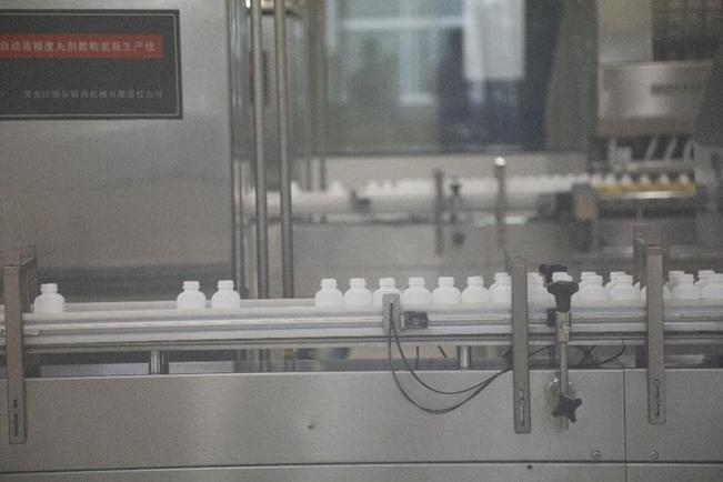 生產(chǎn)車(chē)間內(nèi),工人正在對(duì)藥品進(jìn)行加工
