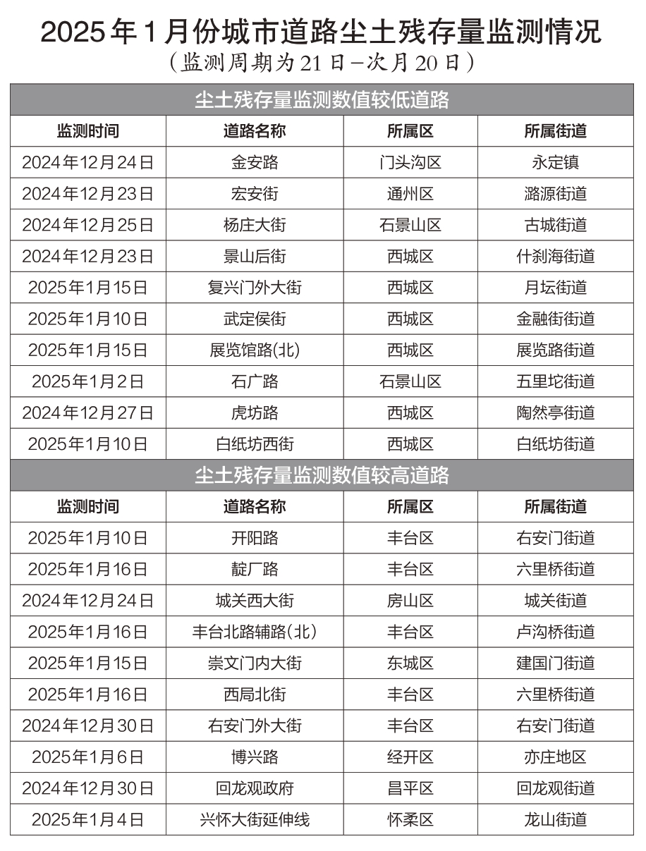 近年来尘土残存量检测数据显示,2024年市级作业道路监测均值较2023年下降13.3%;区属一级道路均值较2023年下降8.9%。北京市交出了一份不错的“洁净城市”成绩单。