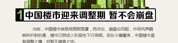 讓圖片和數(shù)字說話,告訴你一個通俗易懂的地產(chǎn)世界。用圖片專題的形式,將紛亂復(fù)雜的地產(chǎn)事件和相關(guān)數(shù)據(jù),通俗易懂的來展示,讓您可以一目了然,留下深刻印象。