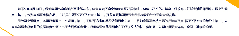 不過(guò),一個(gè)市場(chǎng)現(xiàn)象是可喜的。據(jù)戴德梁行的數(shù)據(jù)統(tǒng)計(jì),2014年,南京高端寫(xiě)字樓物業(yè)的供應(yīng)量將超過(guò)35萬(wàn)平方米,主要集中于河西和南站區(qū)域,新街口和鼓樓核心區(qū)供應(yīng)量不足7萬(wàn)平方米。