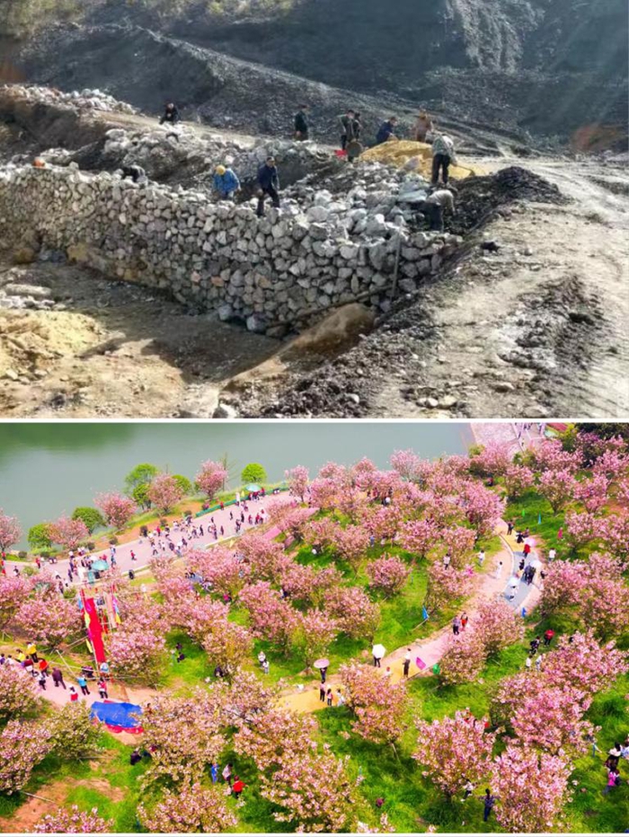 “過(guò)去,村里植被破壞、山體損毀、環(huán)境污染,裸露的礦山如一塊塊醒目的‘傷疤’?!甭韵麓妩h委書記周常堅(jiān)說(shuō),當(dāng)年村里7000畝山林,因采礦被破壞的就有近700畝,漫天灰塵讓人睜不開眼。