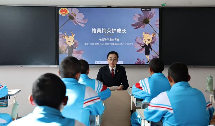 罗布卓玛和同事们开始摸索更适合青少年的普法模式,逐步引入心理疏导、冲突调解、专业社会服务等,搭建起有温度的未成年人保护体系。2020年,“格桑梅朵护未队”成立。两年后,城关区青少年法治实践教育基地建成,基地内的VR体验区、模拟法庭、电子沙盘游戏室,成为孩子们学习法律、调节情绪的成长空间。
